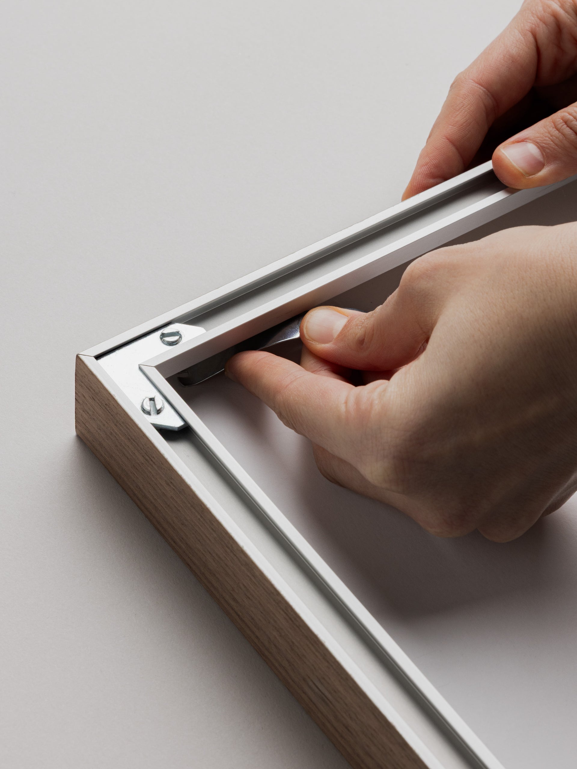 Slight the frame strip back in, ensuring everything sits edge to edge.