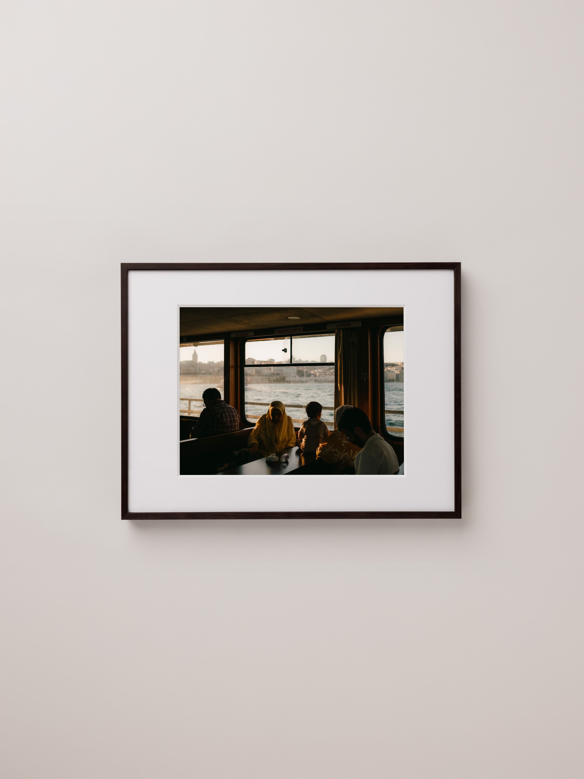 A photography artwork from the "Unfinished Conversations" series, capturing a quiet everyday moment of a family commuting across the Bosporus. Produced in archival quality and professionally framed, it brings warmth, depth, and lived emotion to any space.